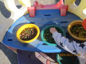 幼稚園に帰ってきて拾ったドングリで早速おままごとが始まります。